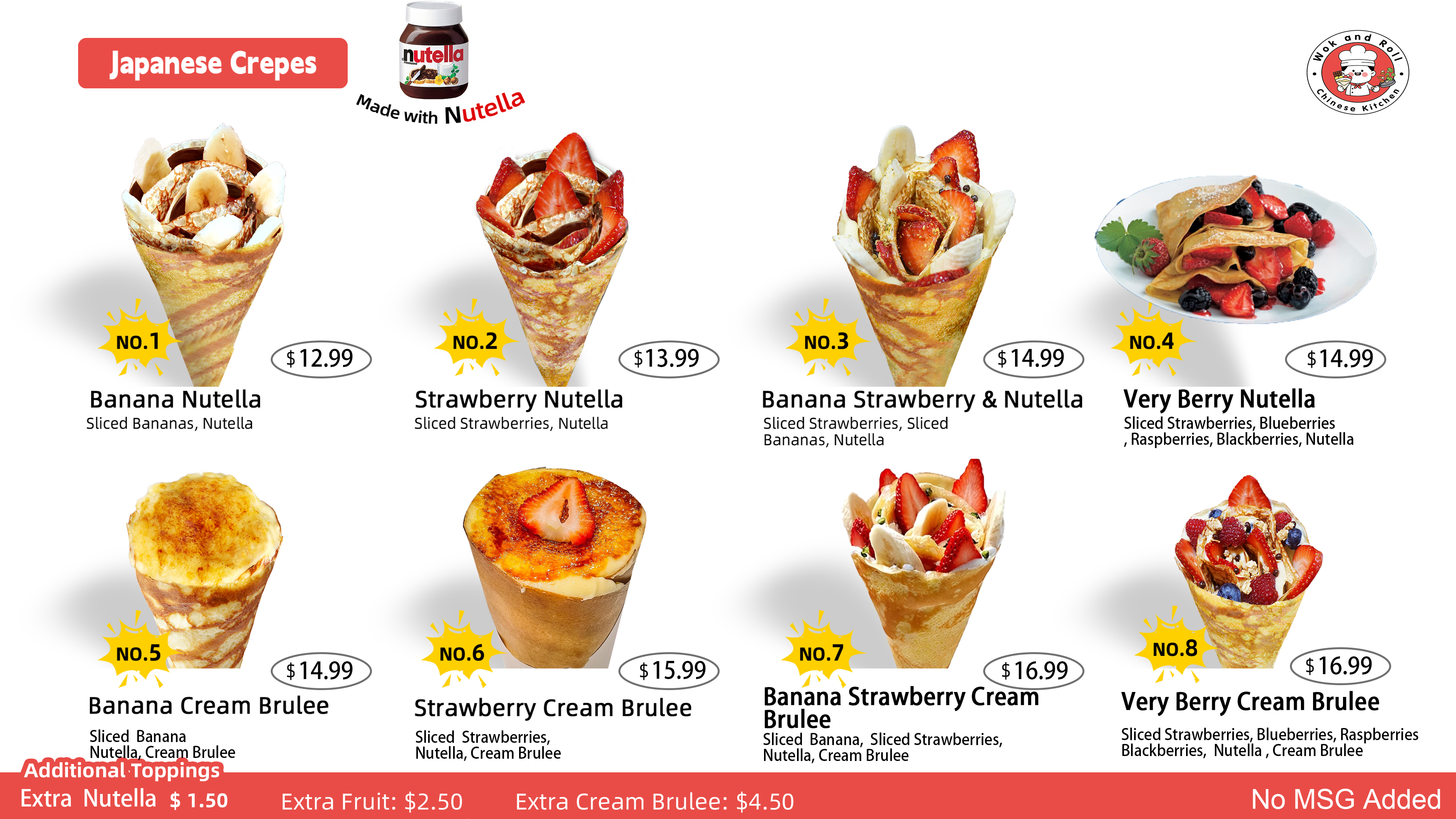 At Wok and Roll Sudbury, we take pride in offering our customers delicious and authentic Chinese cuisine and Japanese crepes, crafted to the highest standards. Each dish we prepare is one-of-a-kind, and we guarantee you won't be disappointed.